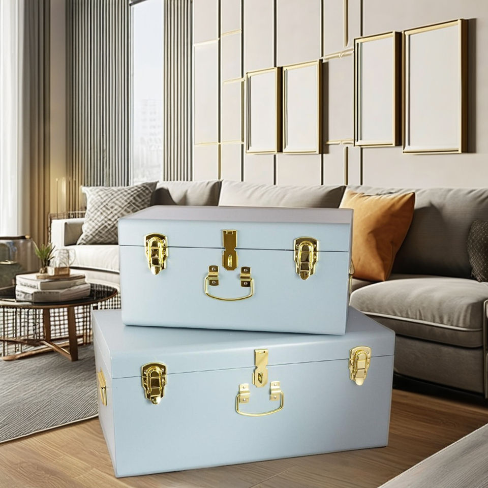 Baúl de Almacenamiento de Metal Galvanizado Hecho a Mano, Organizador de Ropa Rectangular Personalizable, Estilo Americano, Multifuncional