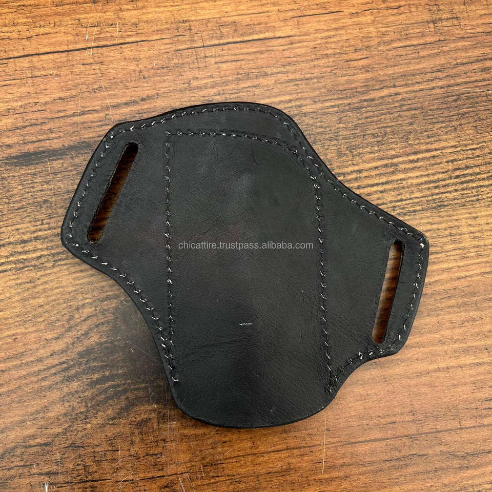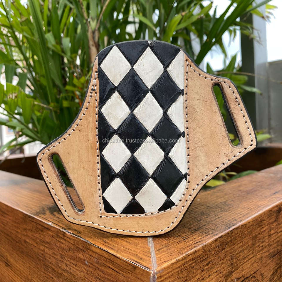 Funda de cuchillo de alta calidad para entusiastas del aire libre, funda de cuchillo con lazo de cinturón abierto con patrón a cuadros de cuero genuino hecho a mano