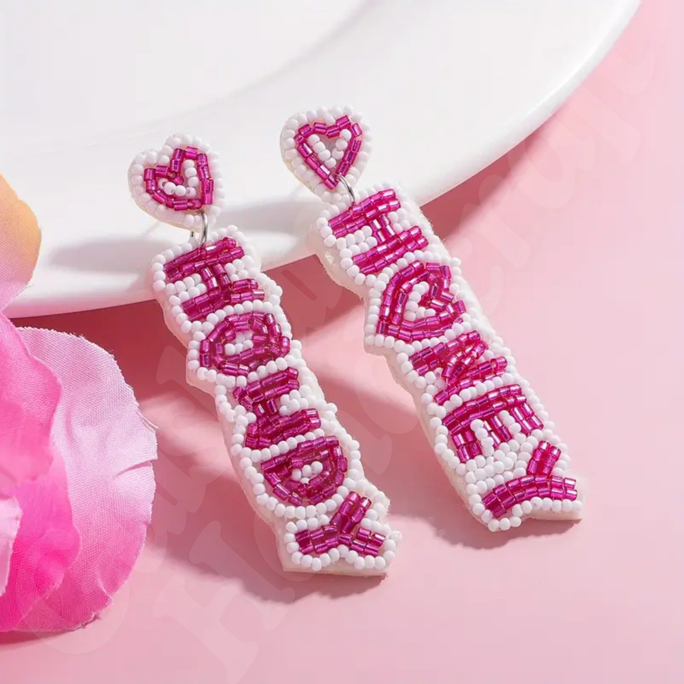 Pendientes colgantes de cuentas de cristal hechos a mano, diseño de letras, colgantes simples y deportivos de acero inoxidable para deportes y colección de invierno