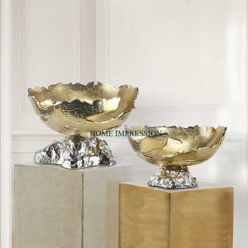Cuenco de Metal de Color dorado y plateado hecho a mano, decoración sostenible para el hogar, accesorios de mesa, vajilla de aluminio multiusos