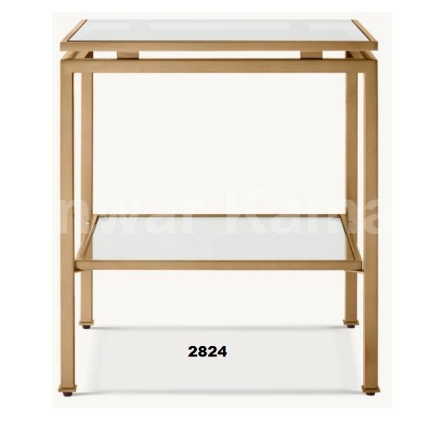 Hecho a mano de acero inoxidable dorado y vidrio templado transparente Mesa cuadrada de 2 niveles con acabado de latón Ideal para sala de estar