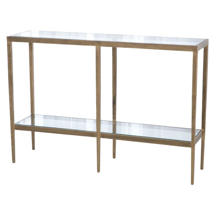 Mesa de consola lateral de pared de 2 niveles de vidrio templado superior y acero inoxidable dorado hecho a mano para oficina, hogar, cocina, sala de estar y dormitorio