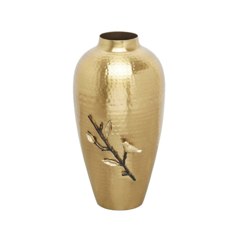 Florero artesanal de latón dorado con forma de Matka con acabado martillado y diseño floral para la decoración del hogar y la Oficina
