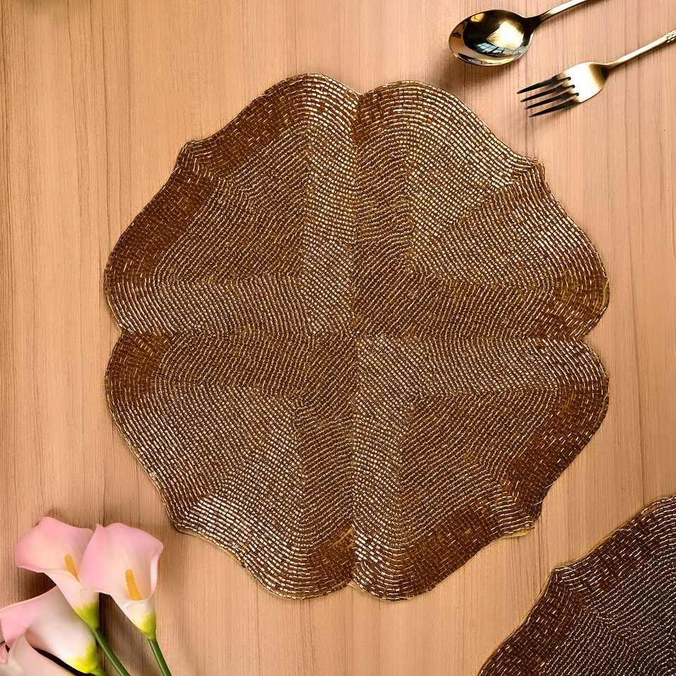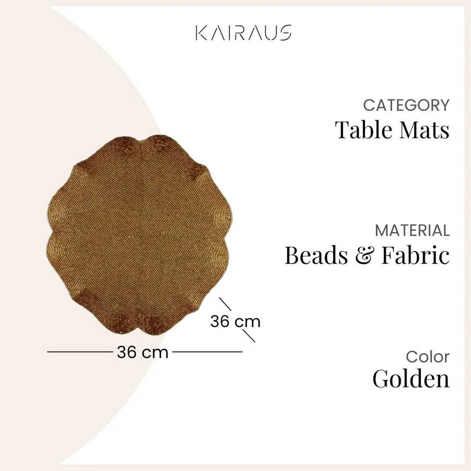 Mantel Individual Hecho a Mano con Cuentas Doradas y Tela, 36x36 cm, Diseño Sólido, para Uso Doméstico, Versátil y de Fácil Mantenimiento