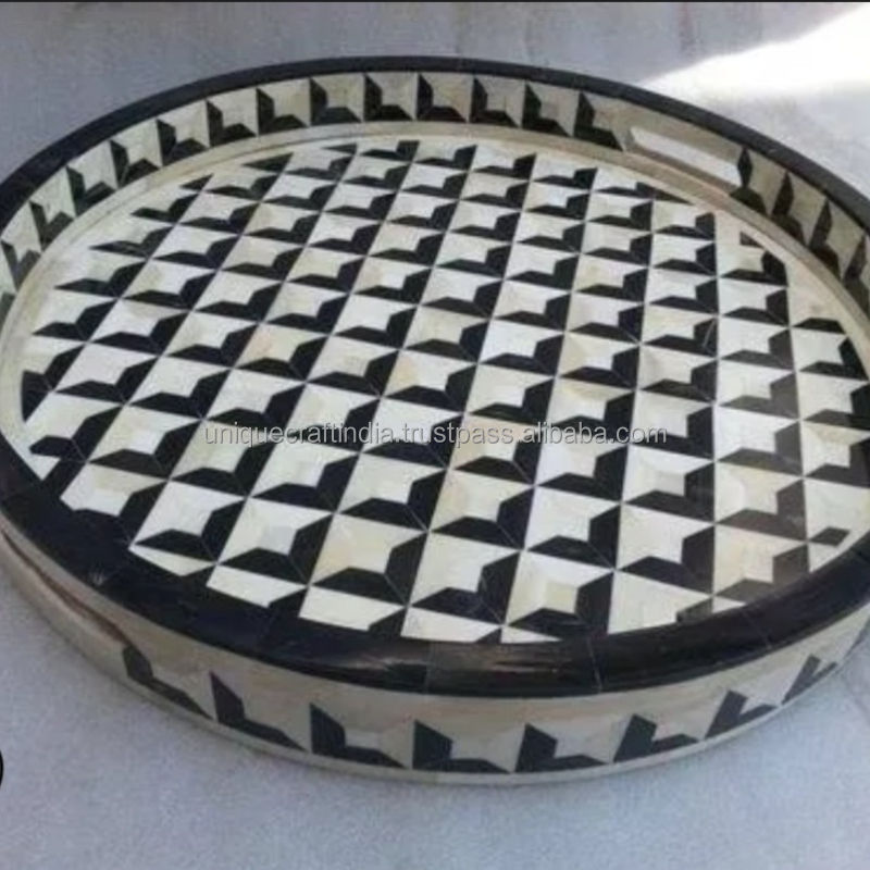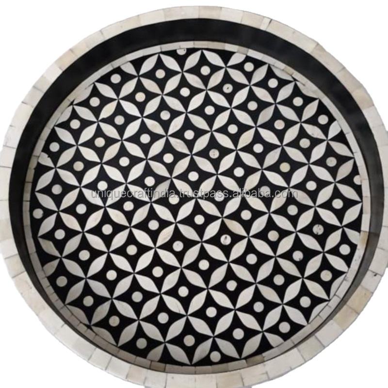 Bandeja Redonda de Hueso Verde con Incrustaciones Hechas a Mano, con Intrincado Diseño Floral, Elegante Bandeja Decorativa para el Hogar y la Cocina