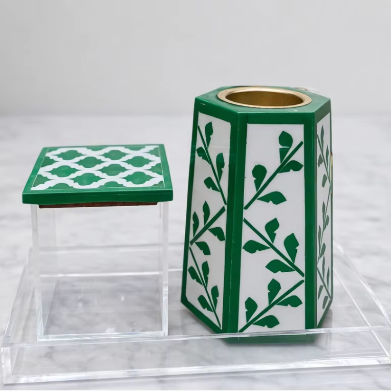 Jarrón Decorativo Artesanal con Incrustaciones de Hueso Verde y Blanco, con Caja de Almacenamiento para Adornos a Juego, Juego de Decoración para el Hogar Hecho a Mano de Lujo