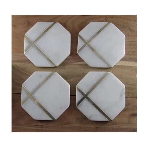 Posavasos de mármol natural con incrustaciones de latón gris hechos a mano, antideslizantes, para el hogar, oficina, Hotel, alfombrillas y almohadillas para té