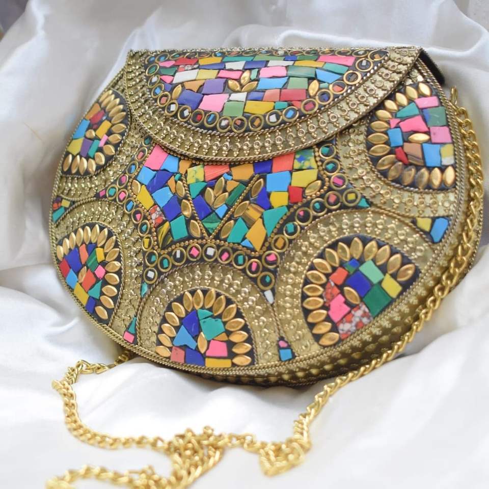 Bolso de Metal de mosaico de piedra de corte hecho a mano de alta calidad para mujeres/niñas, bolso de mano de Metal nupcial de alta calidad