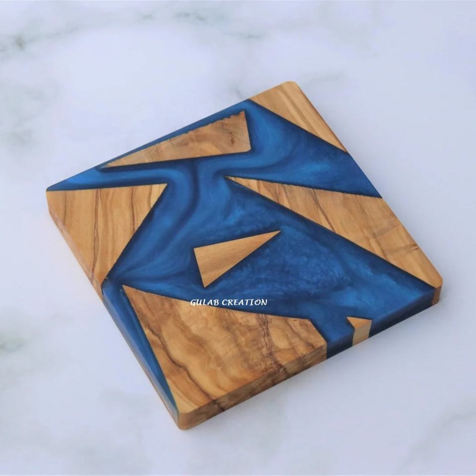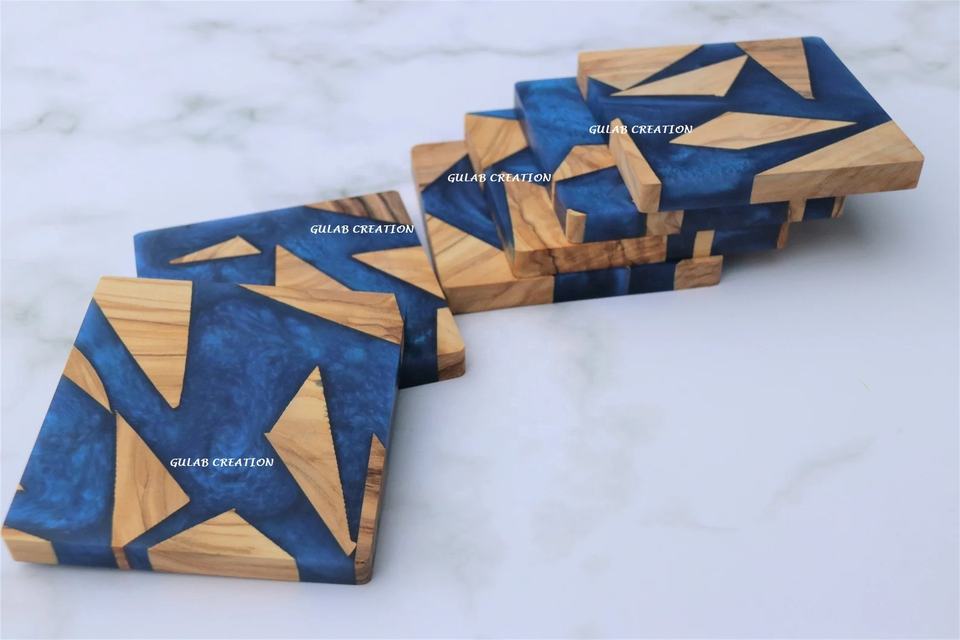 Posavasos de resina y madera resistentes al calor hechos a mano, juego de 6 elegantes tapetes para bebidas para protección de café, té y mesa de comedor