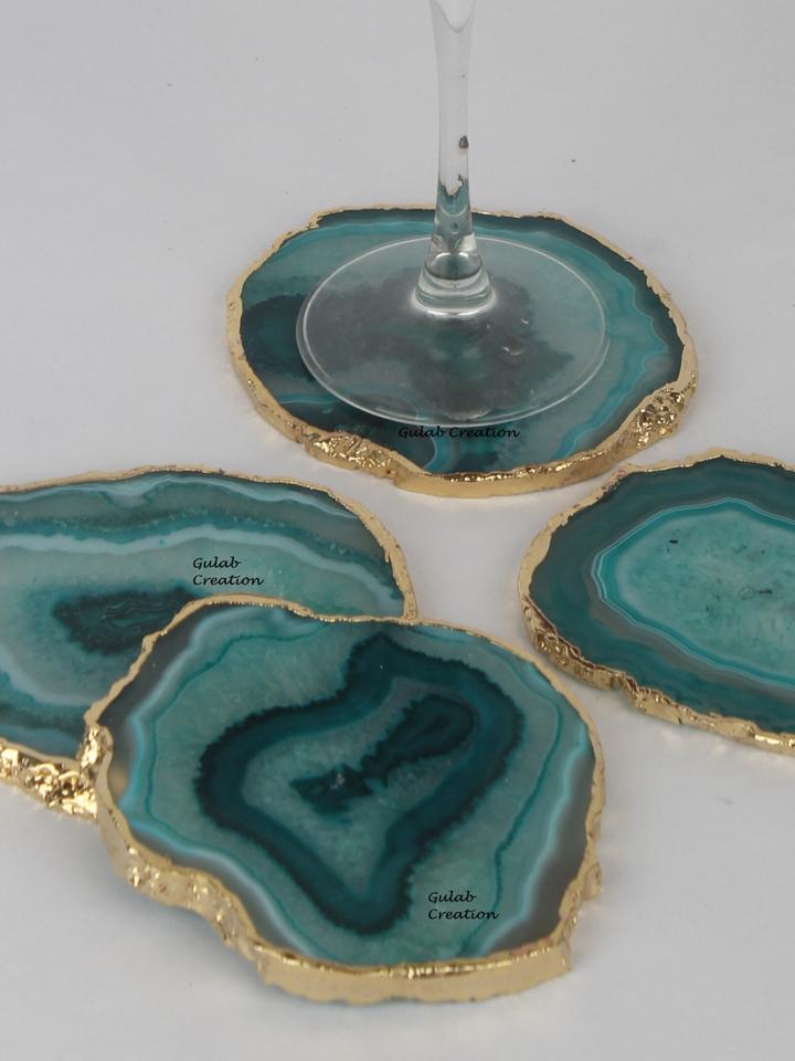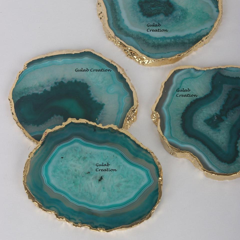 Posavasos de cristal de ágata verde de forma Irregular hecho a mano, Material de resina, bordes dorados para decoración del hogar, regalos de inauguración