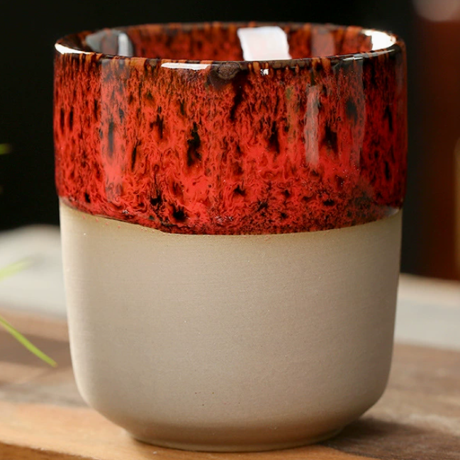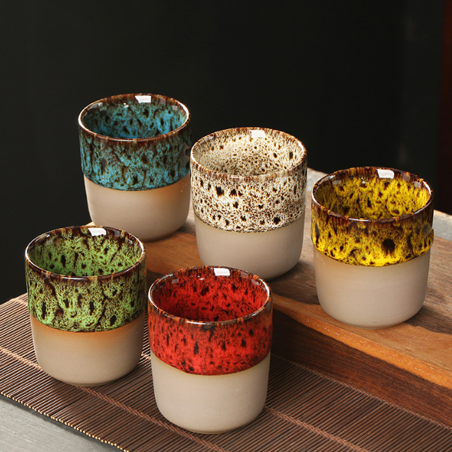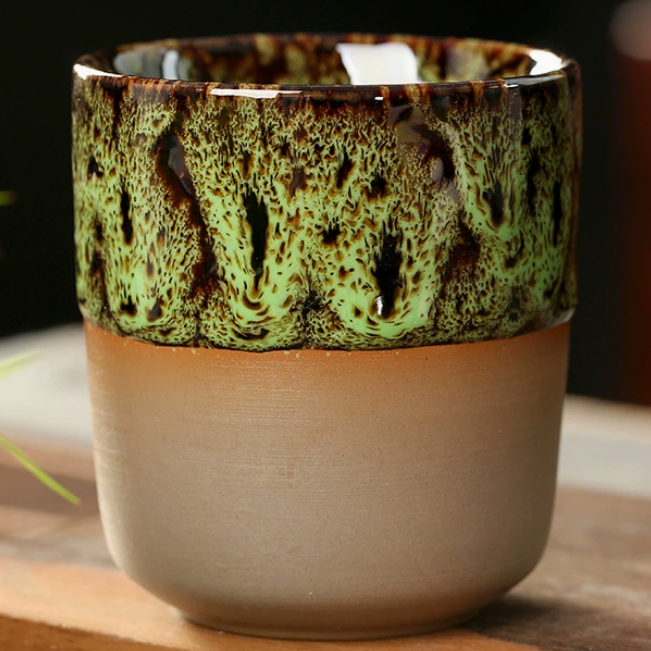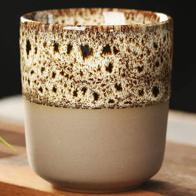 Taza de té japonesa retro Wabi-Sabi con esmalte fluido