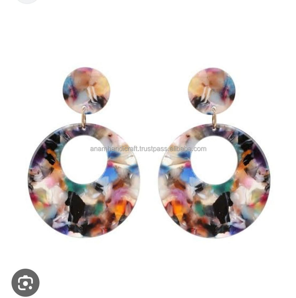 Pendientes colgantes de resina de color personalizados de lujo hechos a mano para mujer, accesorios de moda altamente pulidos de alta calidad de la India