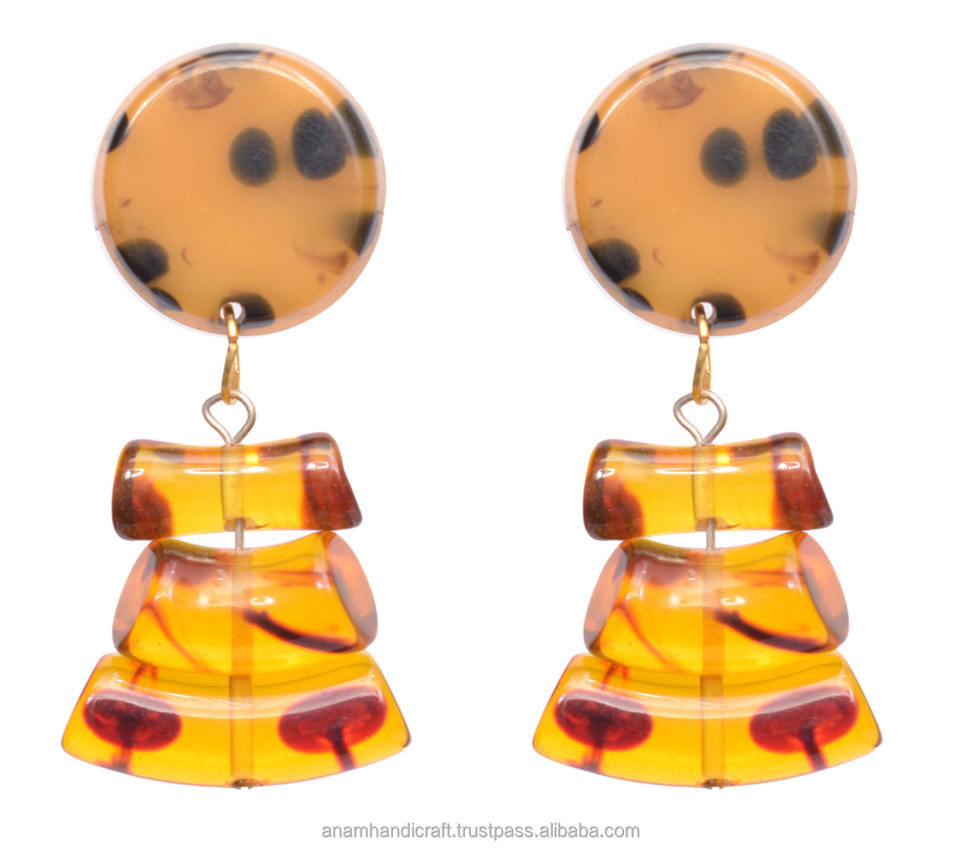 Pendientes colgantes de resina de color personalizados de lujo hechos a mano para mujer, accesorios de moda altamente pulidos de alta calidad de la India