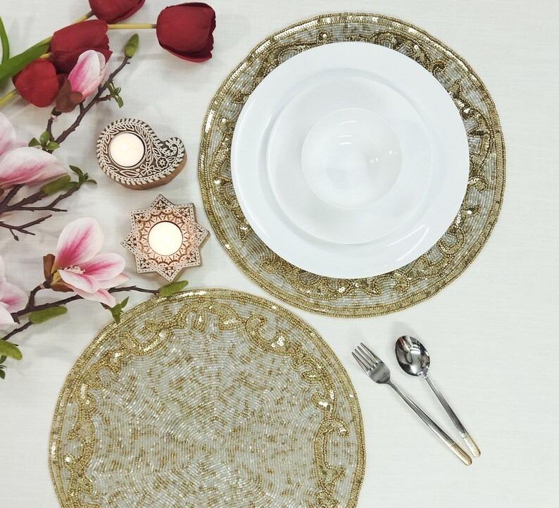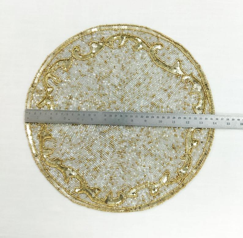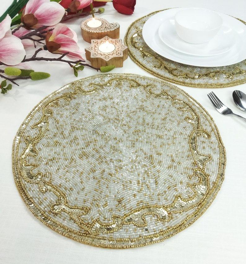 Manteles Individuales de Cuentas de Semillas de Lujo Hechos a Mano, Bordado Intrincado, Diseño Personalizado, Manteles Ecológicos para el Hogar, Bodas, Halloween
