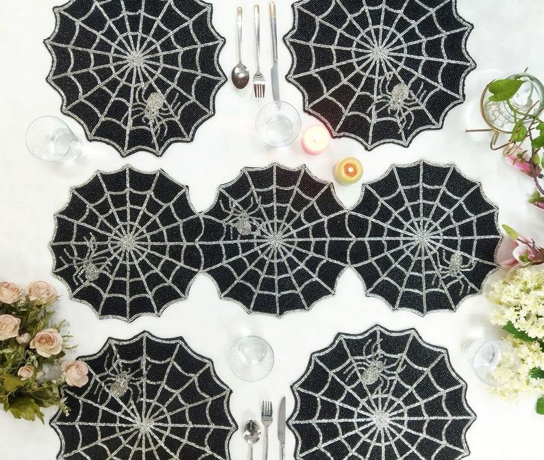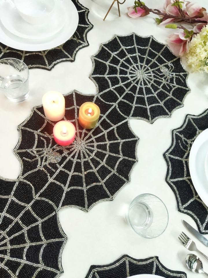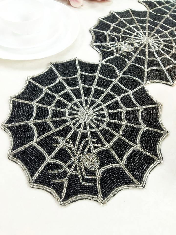 Manteles Individuales de Lujo Hechos a Mano con Cuentas de Semillas y Bordado Intrincado, Diseño Personalizado, Manteles de Cuentas para Halloween y Navidad