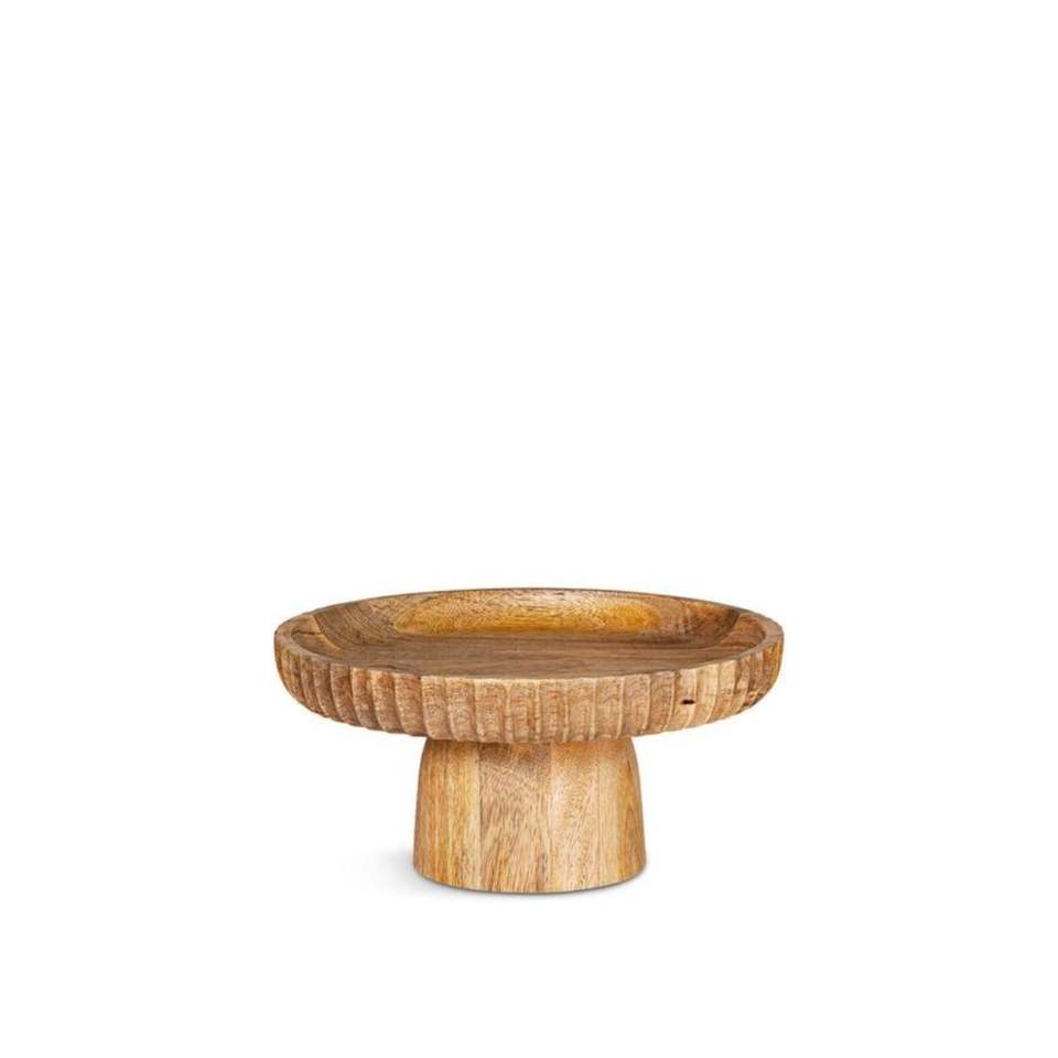 Soporte para Pastel de Madera de Mango Hecho a Mano, Base Redonda Rústica para Exhibición de Postres, Frutero de Madera Acanalado y Bandeja para Servir, Soporte Decorativo para Pastel