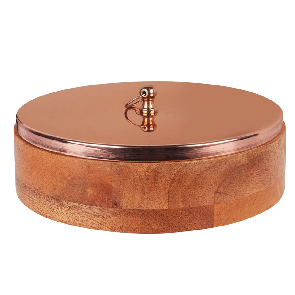 Caja Redonda para Chapati de Madera de Mango Hecha a Mano, Cazuela de Madera para Roti con Tapa, Recipiente para Servir Comida Caliente, Vajilla