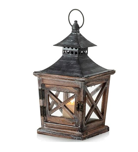 Linterna de madera de mango hecha a mano con acabado lavado blanco rústico utilizado para la decoración de bodas con relámpagos en interiores