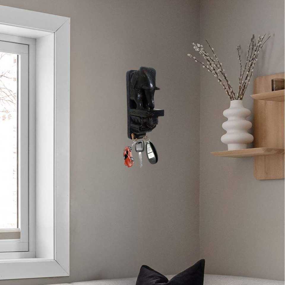 Porta Llaves de Madera de Mango con Diseño de Elefante Hecho a Mano – Organizador de Pared de Madera de Mango para Entrada y Sala de Estar