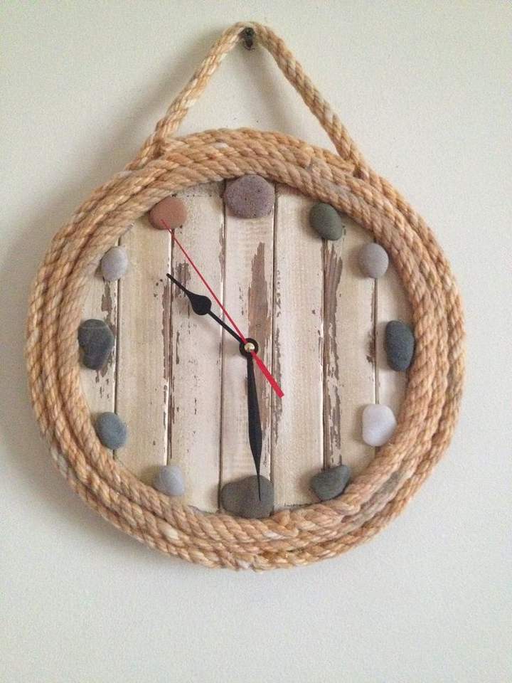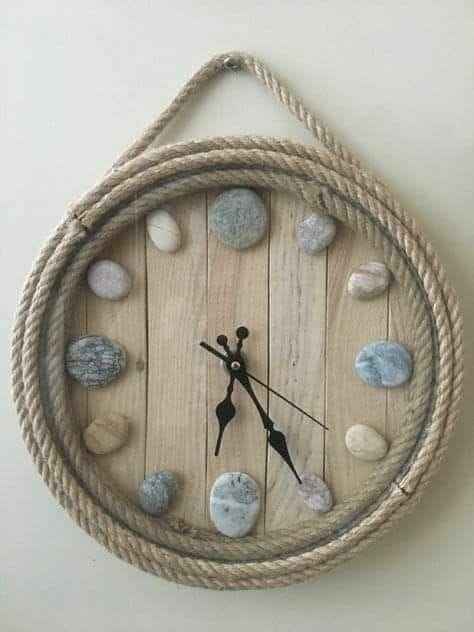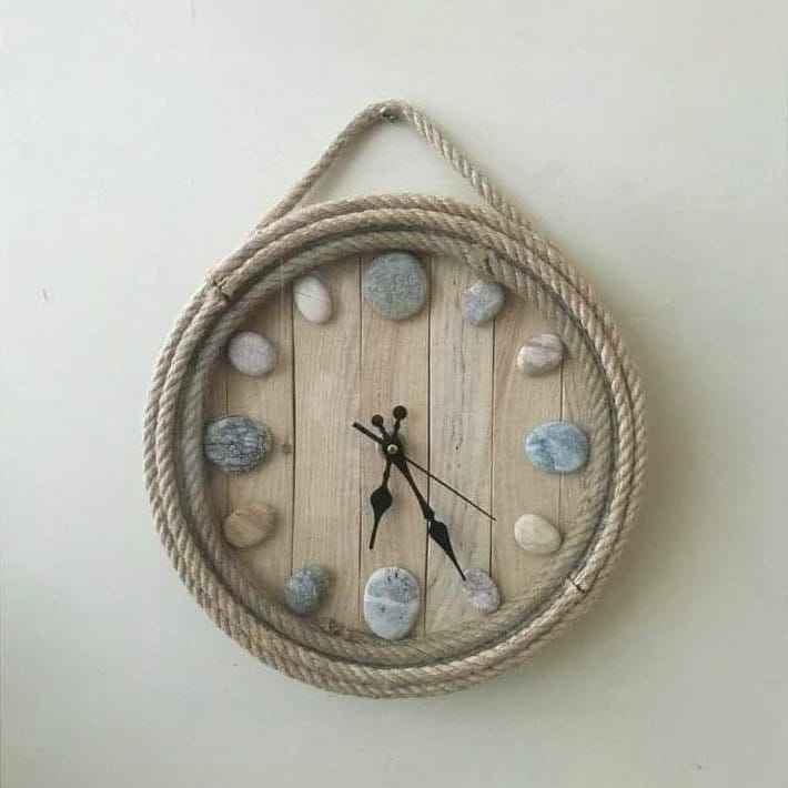 Reloj de Pared de Piedra de Guijarro con Cuerda, Estilo Art Deco Mecánico, Hecho a Mano, Decoración Rústica de Madera para Colgar en la Pared, Decoración Natural para Sala de Estar y Hogar