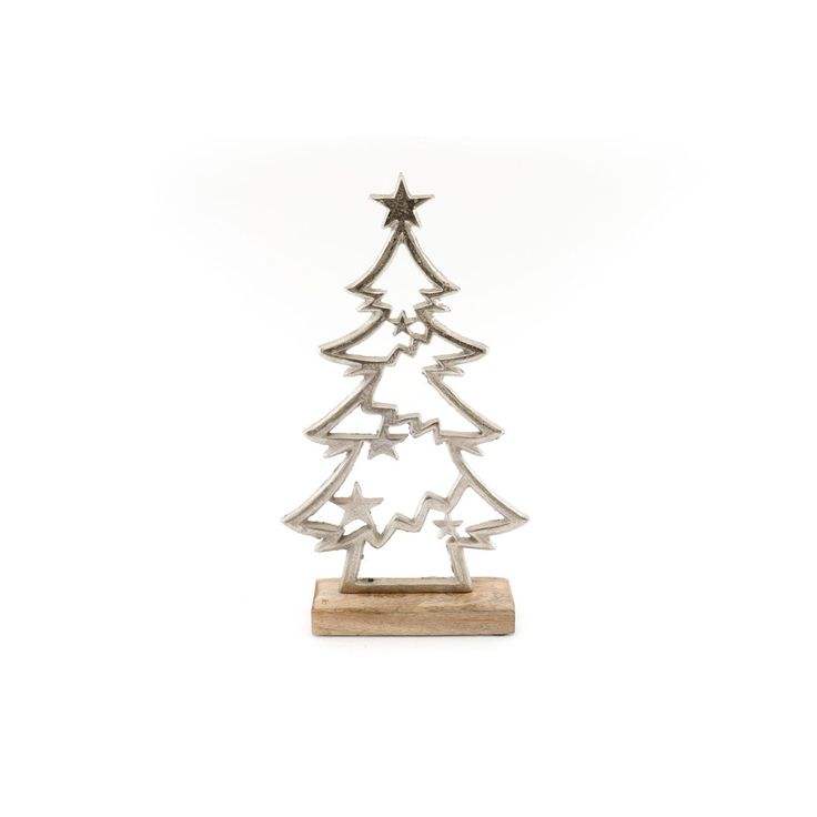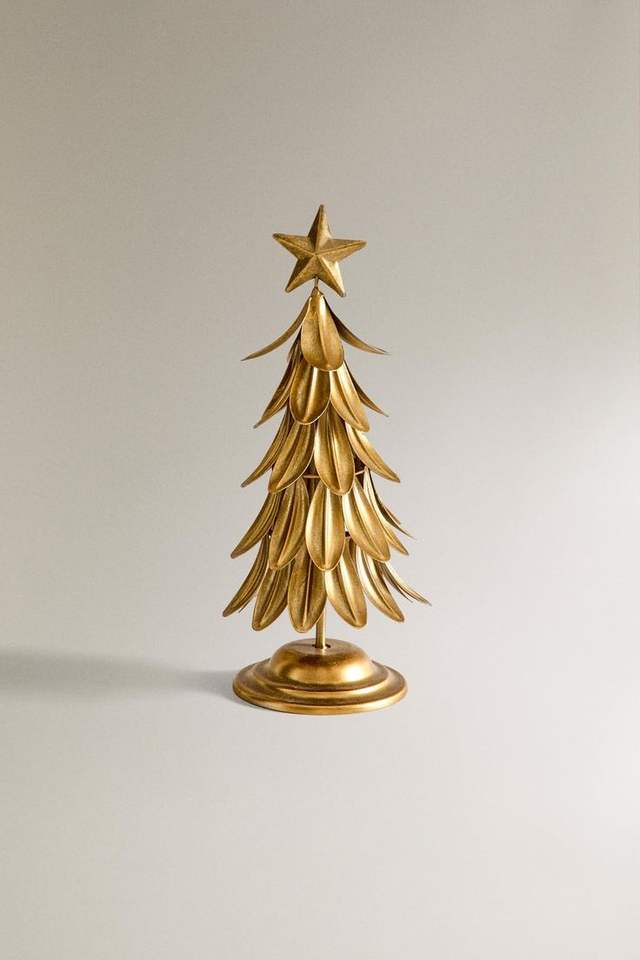 Adorno de mesa navideño de metal hecho a mano con acabado cepillado diseñado para restaurantes decorativos y exhibiciones navideñas.