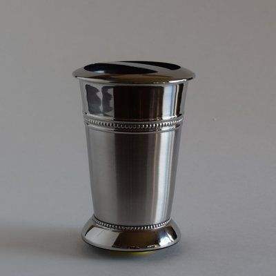 Soporte de cepillo de dientes de metal hecho a mano con acabado cromado suave diseñado para mostradores de baño elegantes y uso diario.