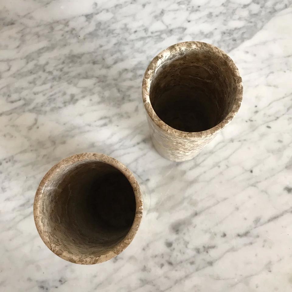 Jarrón Cilíndrico de Mármol Moderno Hecho a Mano, Piedra Fósil Sólida, Decoración de Lujo para el Hogar, Comedor, Sala de Estar, Cocina, Exportador Mayorista