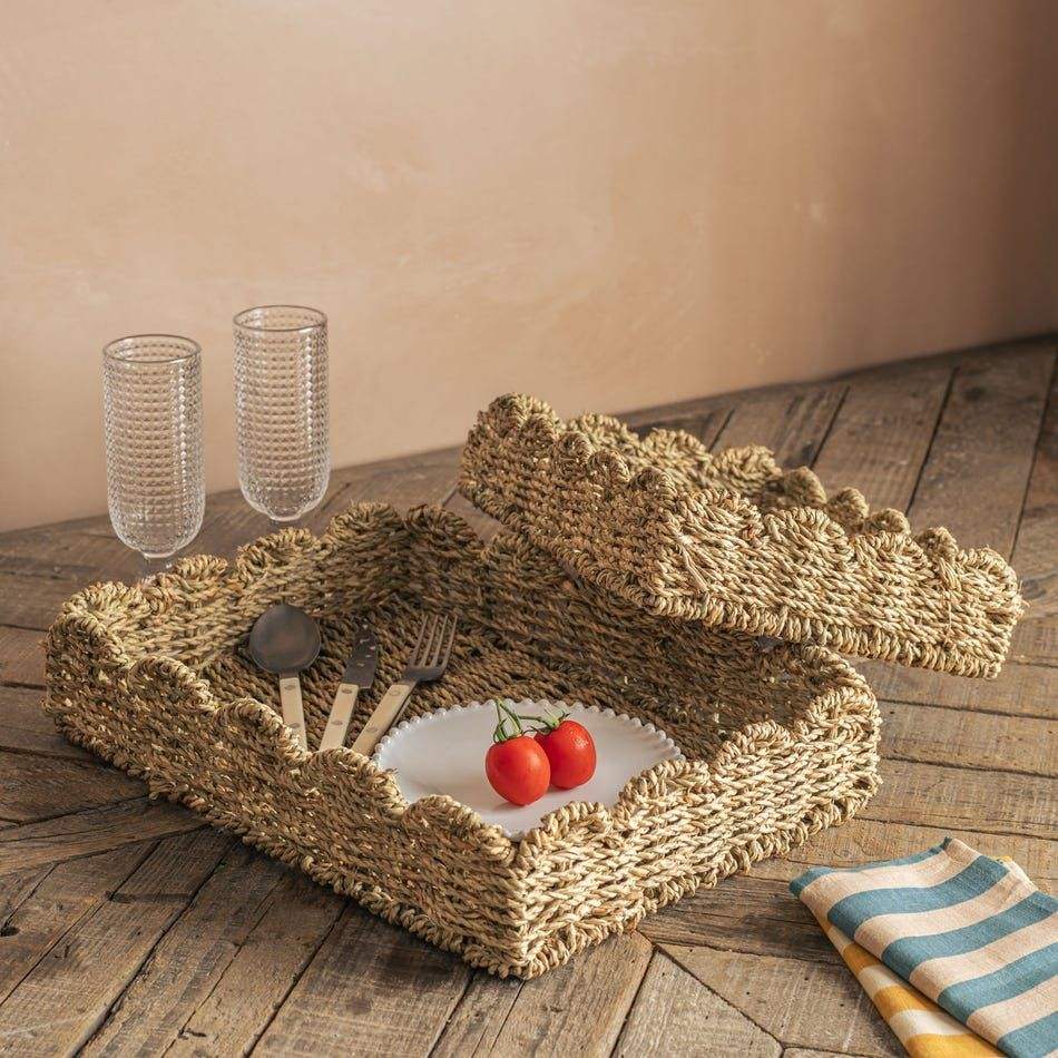 Bandeja de Servicio Decorativa de Ratán de Estilo Moderno Hecha a Mano para Restaurantes y Hoteles, Bandeja para Servir Comida, Cestas de Almacenamiento en Oferta