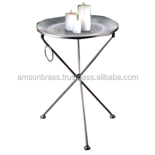 Mesa decorativa marroquí hecha a mano, diseño de grabado, mesa de centro decorativa de hierro y Metal, mesa de diseño de lujo