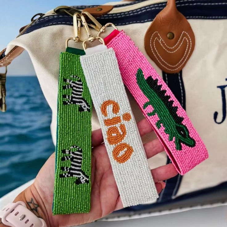 Llavero Rectangular Artesanal de Cebra Ciao y Cocodrilo con Bordado de Cuentas Multicolor, Estilo Boho, Colgante para Bolso, Regalo para Ella
