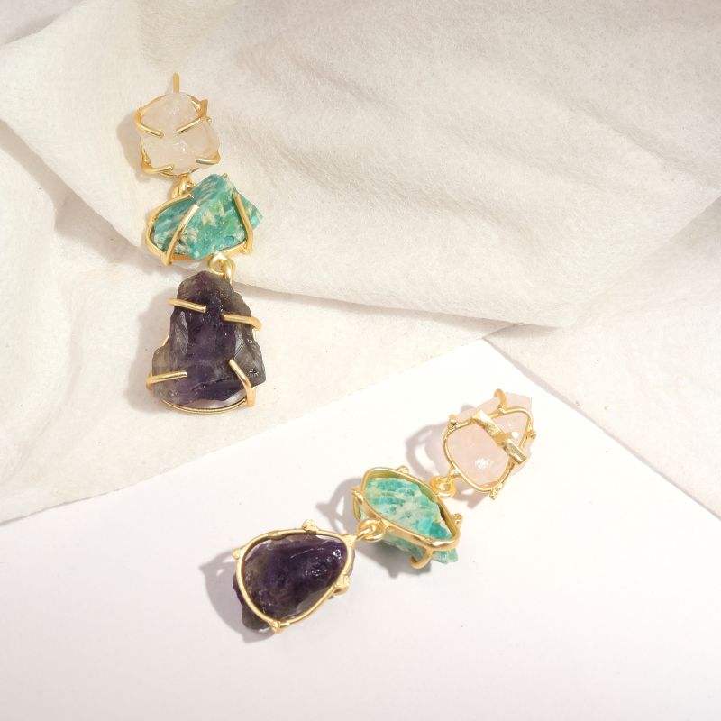 Pendientes de Gotas de Piedras Preciosas Múltiples Hechos a Mano, Chapados en Oro, de Latón, Joyería de Diseño para Mujer