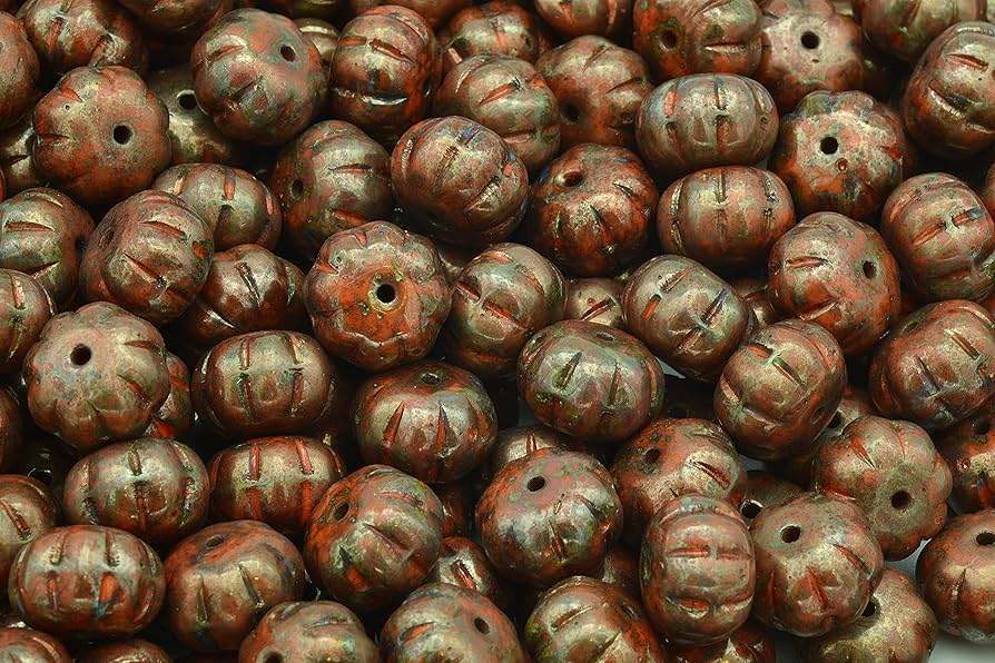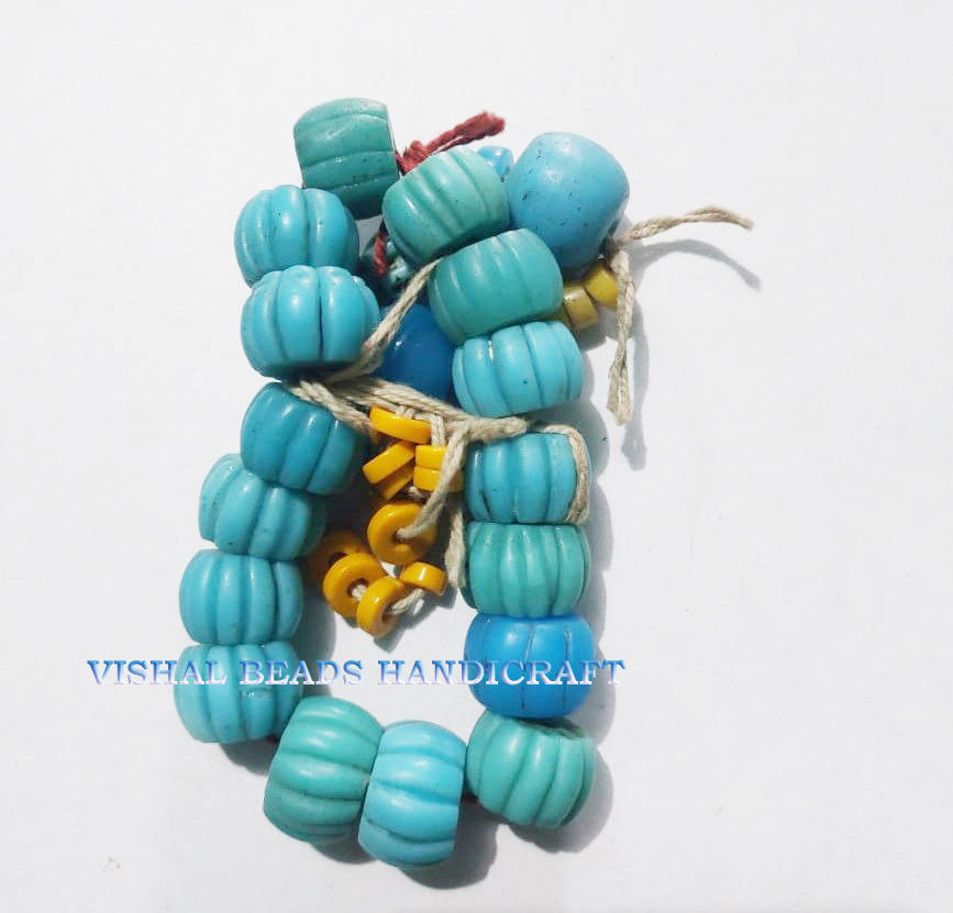 Hecho a mano Natural jardín cuarzo piedra orgánica azul cristal calabaza en forma de Chevron Roundel único orgánico Murano cuentas de vidrio