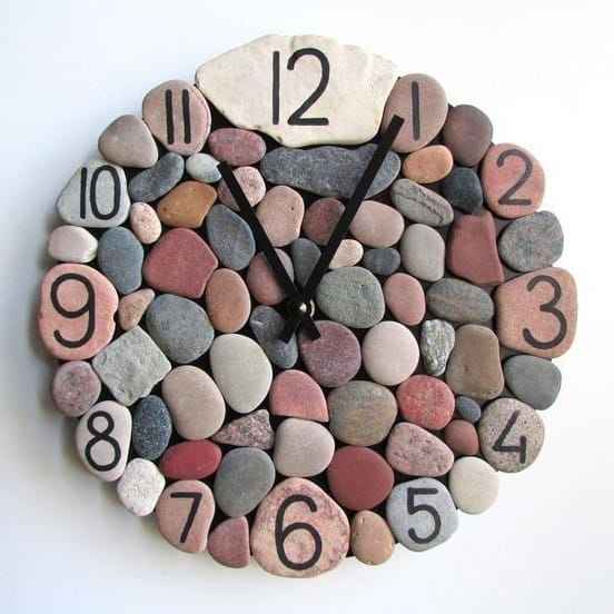 Reloj de Pared Decorativo Rústico Hecho a Mano con Piedras Naturales, Arte Decorativo de Piedra, Decoración para el Hogar, Sala de Estar, Oficina