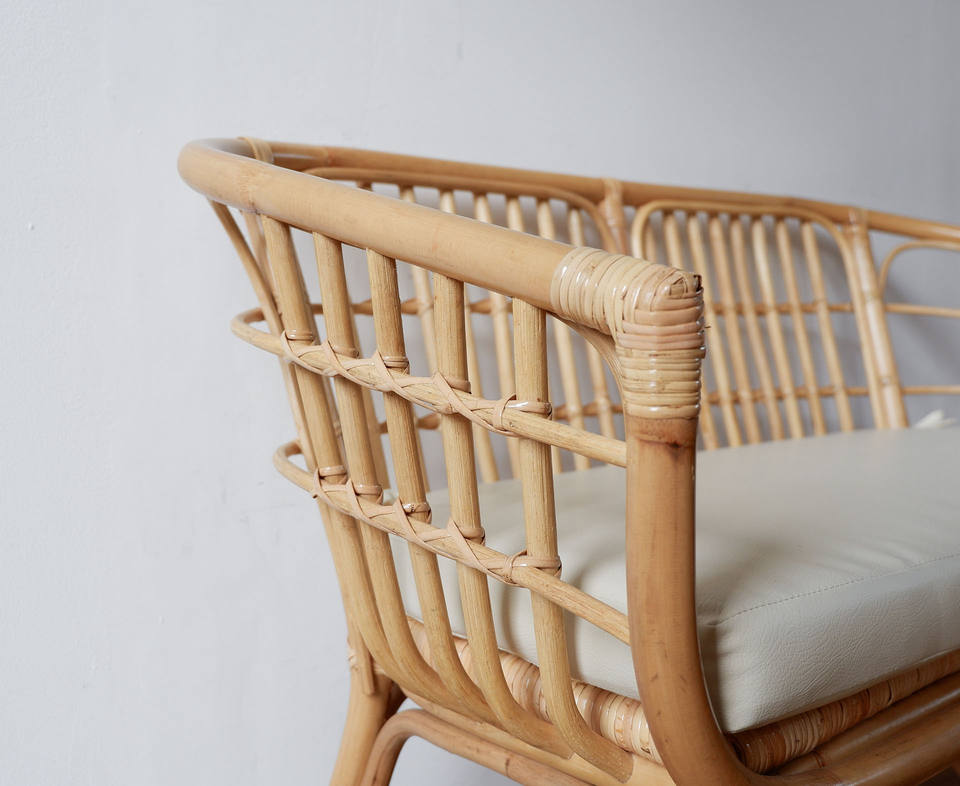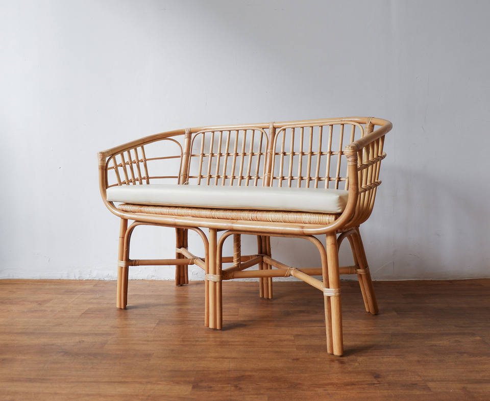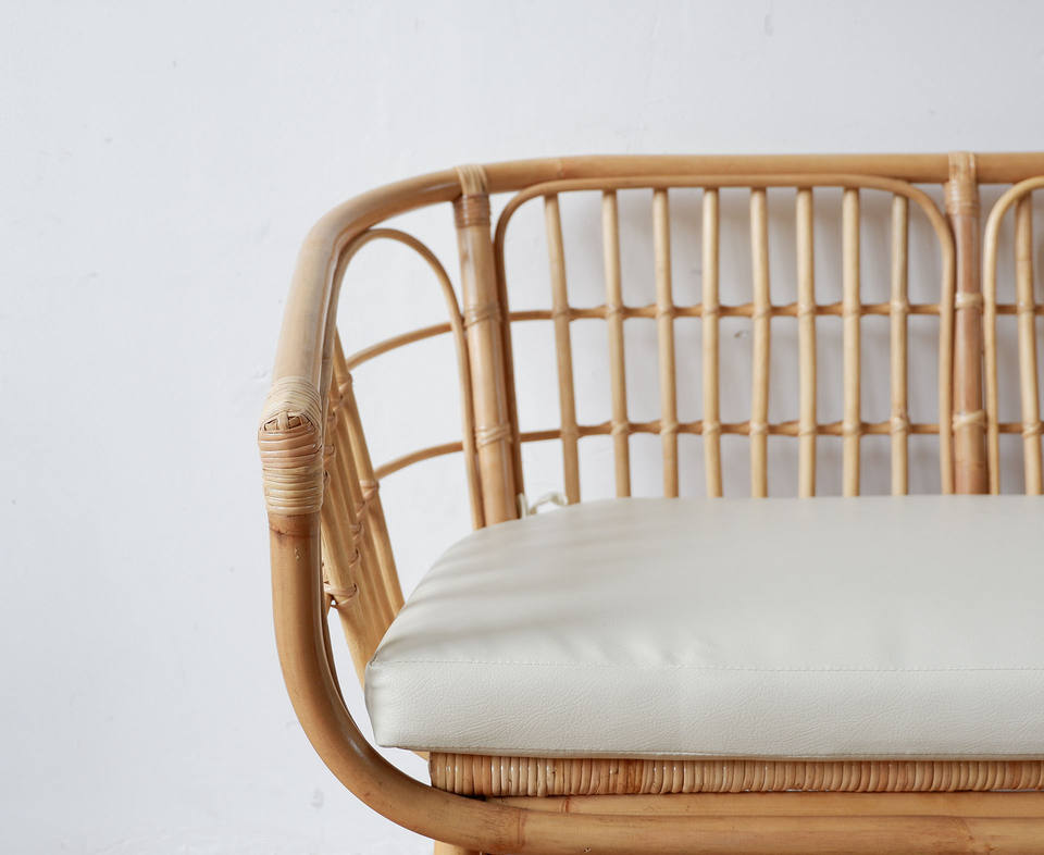 Banco de ratán natural artesanal de 2 plazas con cojín | Diseño minimalista para uso en interiores y patios