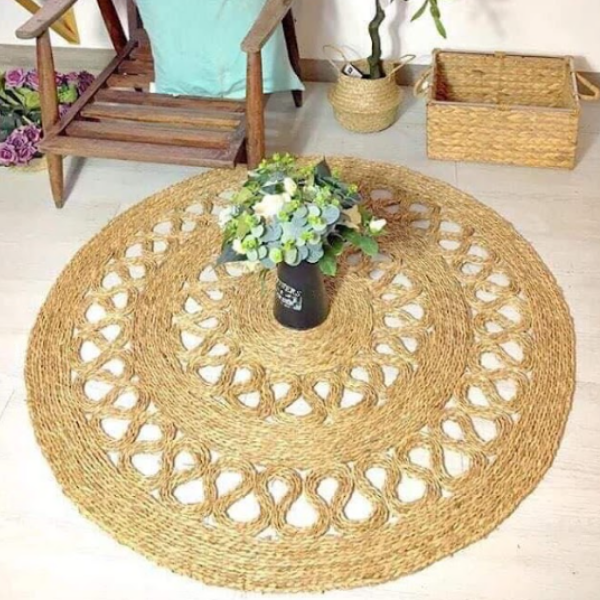 Alfombra Artesanal de Pasto Marino Natural, Tapete Tejido Resistente y Ecológico