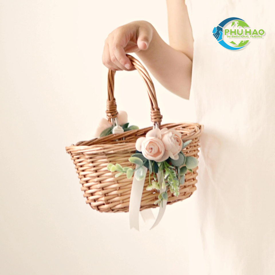 Cesta de mimbre natural hecha a mano para picnic, cesta de flores, cesta de almacenamiento de Vietnam, perfecta para eventos y decoración del hogar