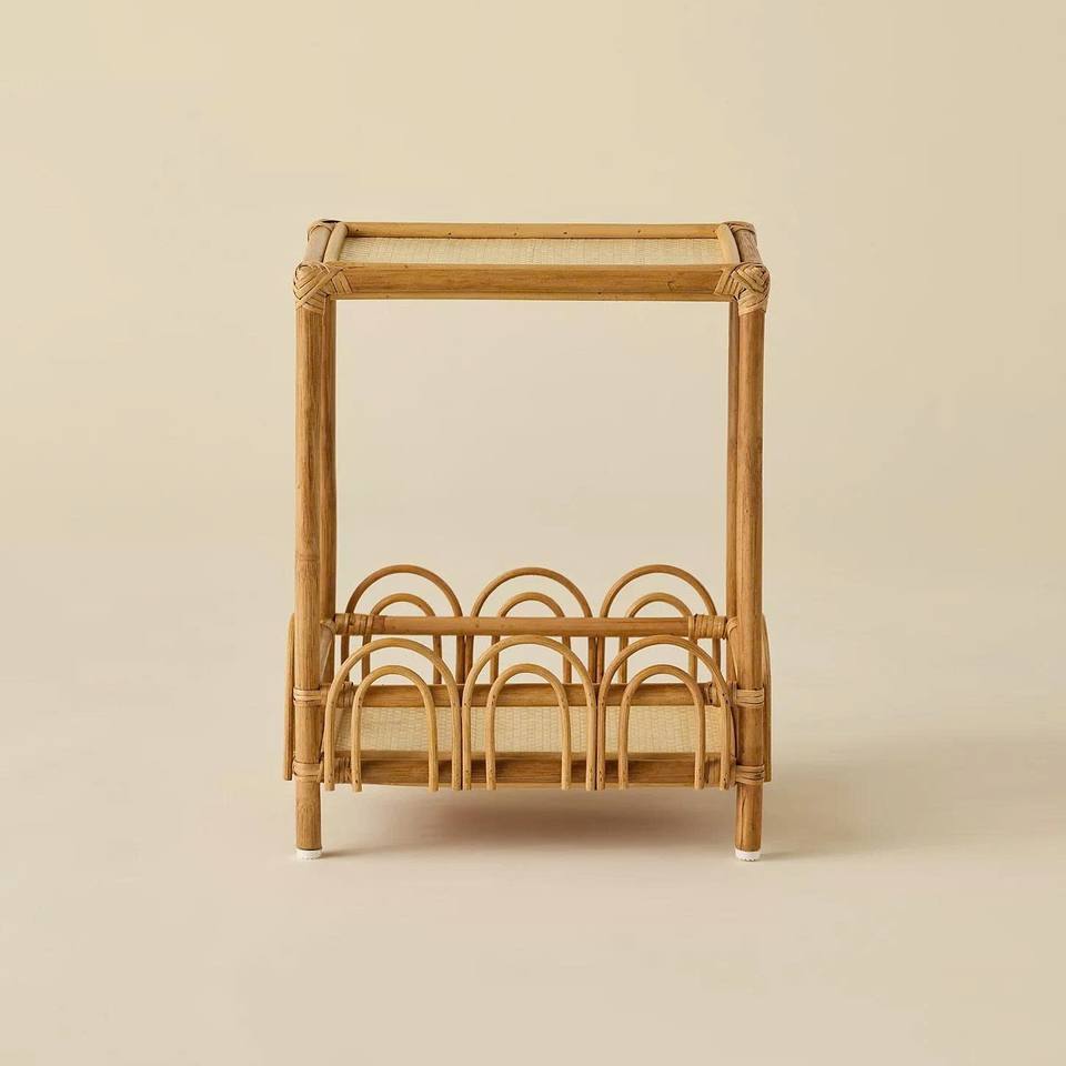 Mesa Auxiliar de Almacenamiento de ratán rectangular de mimbre Natural hecha a mano, muebles para el hogar de interior, perfecta para la decoración del hogar de la sala de estar