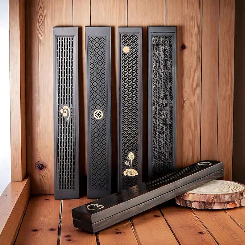 Quemador de Incienso Indio de Madera Natural, Hecho a Mano, Duradero, con Recolector de Ceniza Largo para Meditación y Pooja Religiosa
