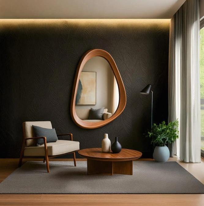 Espejo Art Deco de Madera de Roble Hecho a Mano, Irregular, Asimétrico, Ecológico, Decoración de Pared para Entrada y Hogar