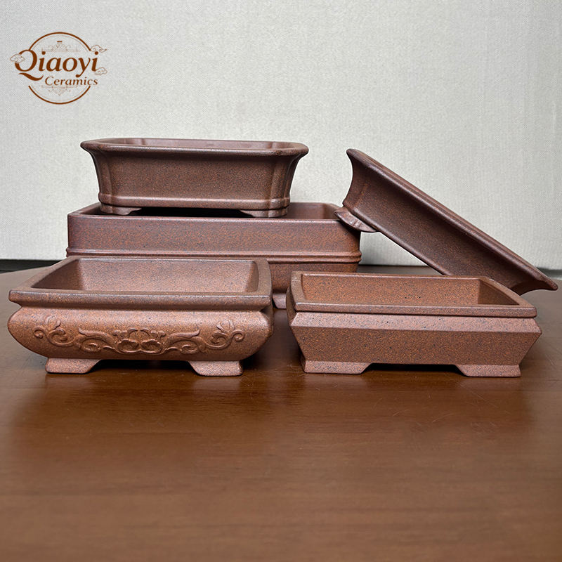 Maceta para Bonsái Yixing Rectangular de Arcilla Púrpura Antigua Hecha a Mano Apariencia Natural y Simple Variedad de Macetas y Jardineras Sin Esmaltar
