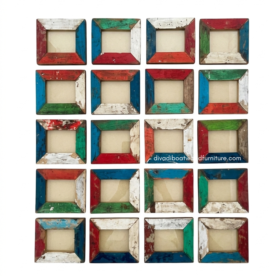 Marco de Fotos Artesanal Ecológico de Madera Reciclada de Barco, Color Natural, para Decoración de Pared en Hogar, Sala de Estar, Dormitorio, Venta al por Mayor
