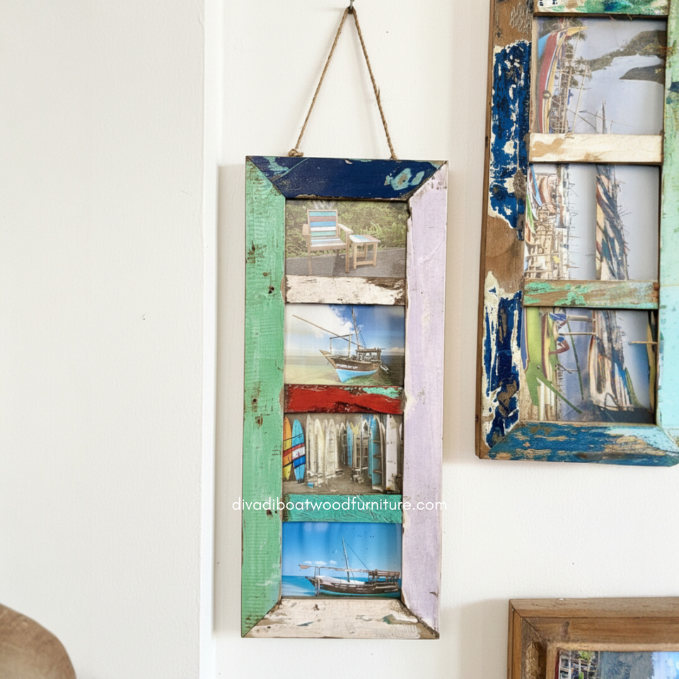 Marco de Fotos Artesanal de Madera de Barco Reciclada, Color Natural, para Decoración de Pared y Hogar, Sala de Estar o Dormitorio, Venta al por Mayor