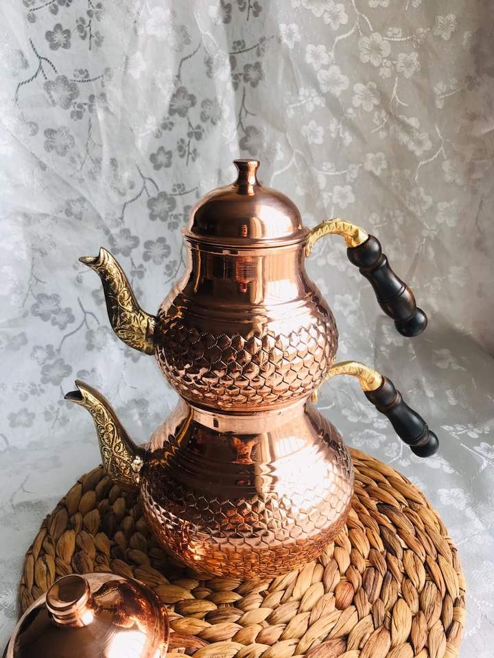 Tetera de Cobre Puro Hecha a Mano con Elegante Boquilla Curva para Servir en la Cocina Tradicional y en el Hogar