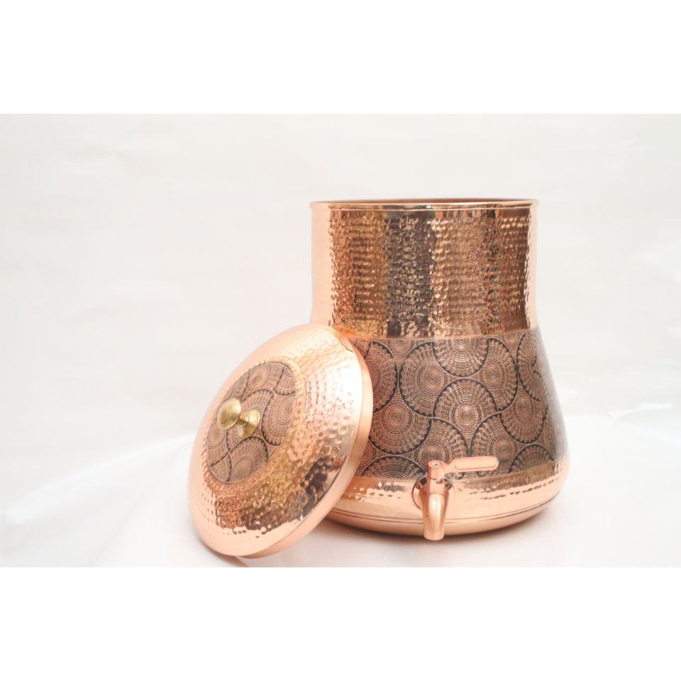 Dispensador de Agua Artesanal de Cobre Puro con Acabado Martillado y Grifo de Latón, Matka Ayurvédica Tradicional para una Bebida Saludable