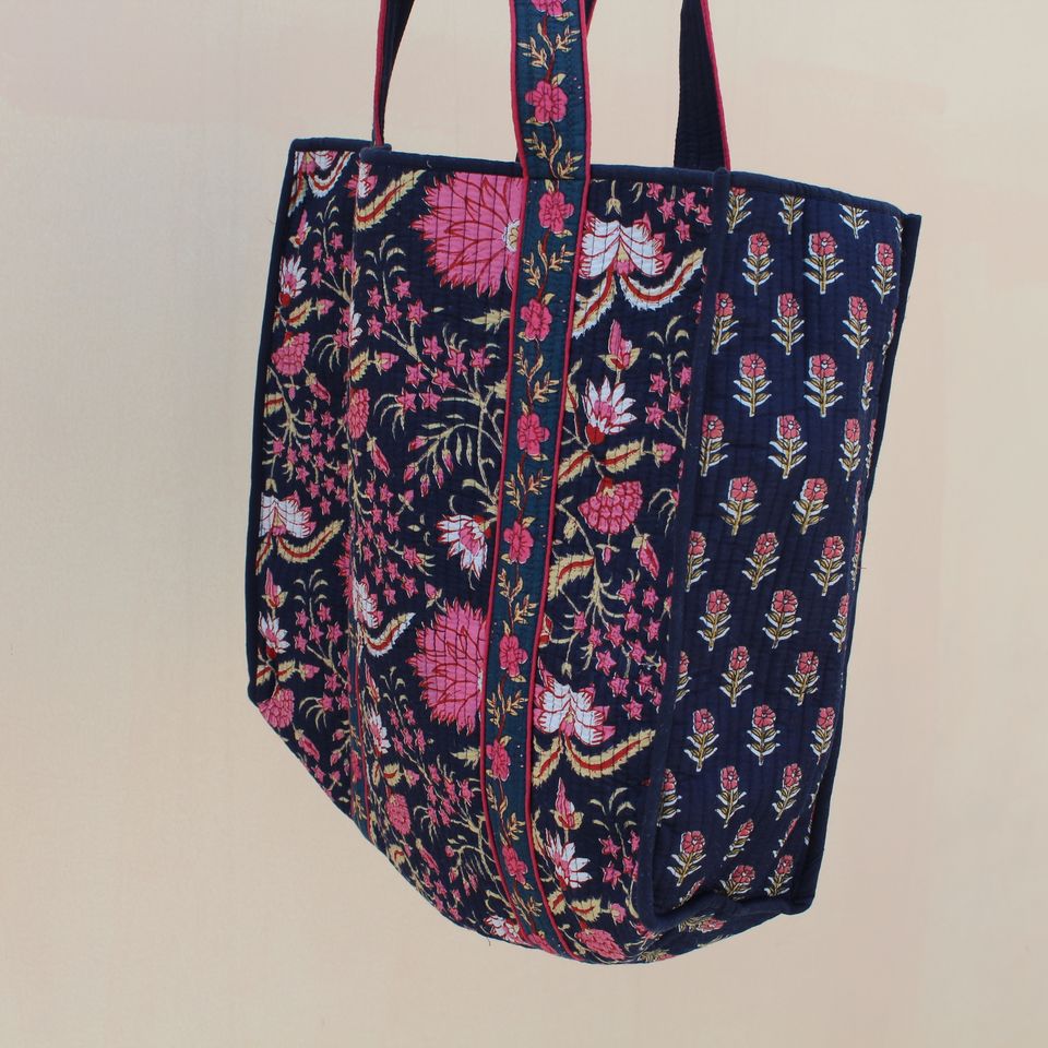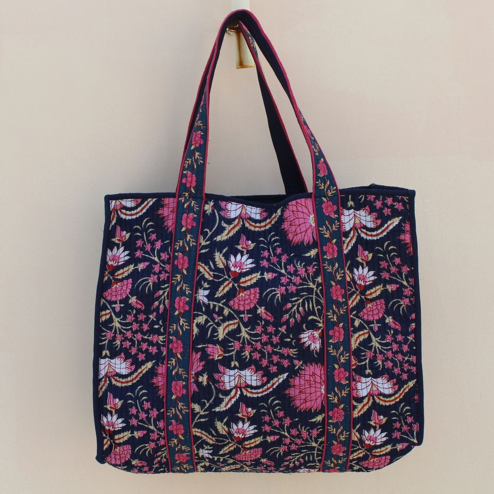 Bolsa de Mano de Algodón Acolchada Hecha a Mano, Reversible, con Estampado Floral, Gran Capacidad, Bolsa de Hombro Larga para Uso Diario, Viajes y Compras