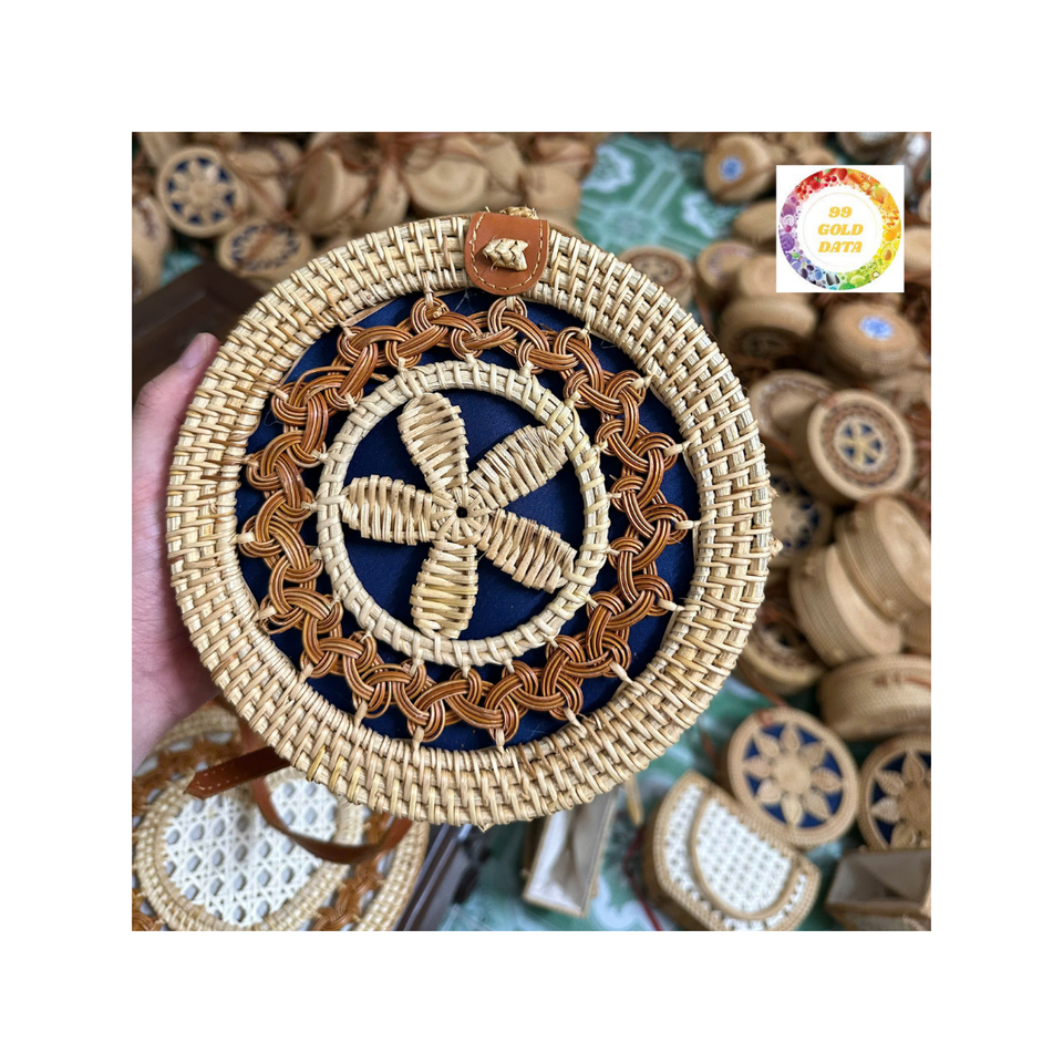 Bolsa de ratán hecha a mano que combina funcionalidad con estilo y funciona como artículo de decoración del hogar.