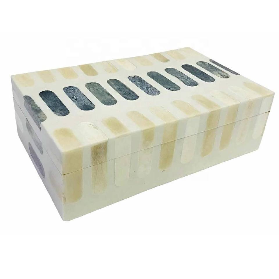 Caja de Almacenamiento Rectangular Hecha a Mano con Incrustaciones de Hueso y Madera, Organizador Decorativo de Joyas a Precio de Mayoreo