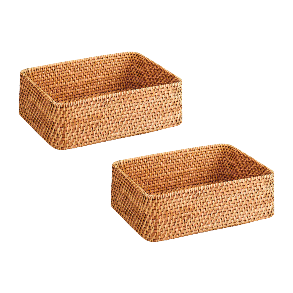 CESTA/BANDEJA DE RATÁN DE Mimbre Rectangular Hecha a Mano de Vietnam, Bellamente Tejida a Mano para una Decoración de Uso Versátil