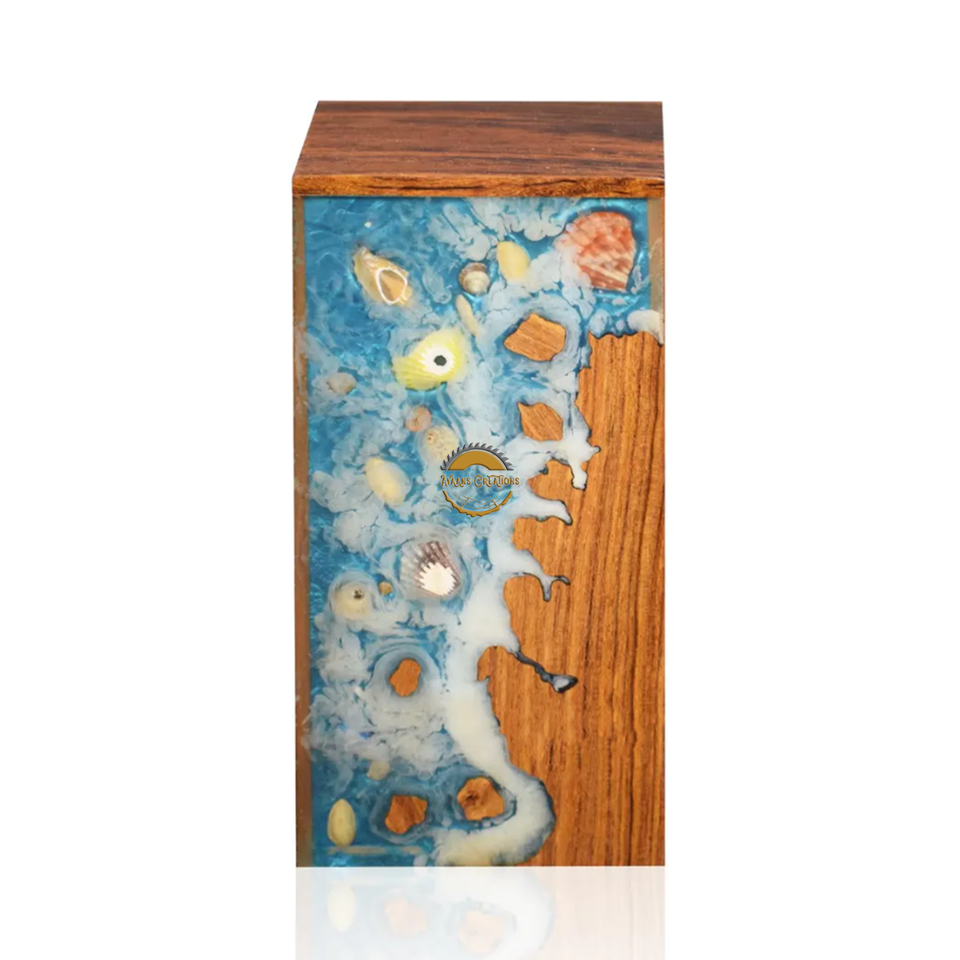 Urna Rectangular de Madera Hecha a Mano con Diseño de Resina de Olas Oceánicas, Urna de Cremación Única de AYAANS