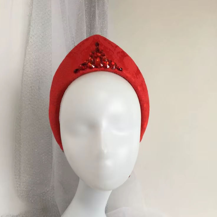 Diadema Acolchada con Bordado de Cristal y Brocado Rojo Hecha a Mano para Mujer, Corona Puntiaguda para Boda y Fiesta, Diadema Estilo Alice